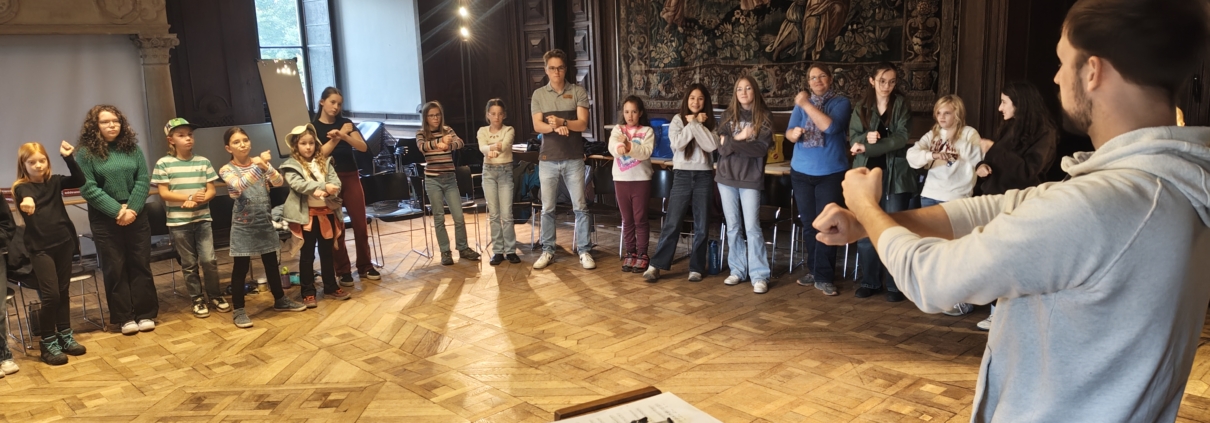 Vor einigen Tagen war ich mit unseren KLOSTERSPATZEN OBERHAUSEN auf der Jugendburg Gemen zu unserem Probenwochenende. Ein besonderer Moment war der Workshop mit Felix Schirmer, der uns in die Welt des Vocal Painting eingeführt hat – eine kreative Methode, mit der Chöre ganz ohne Noten, aber mit viel Achtsamkeit und gegenseitigem Hinhören musizieren. Dabei geht es nicht nur um Klänge, sondern um Verantwortung: Jede und jeder übernimmt im Ensemble eine eigene Rolle, hört auf die anderen und gestaltet den gemeinsamen Klang aktiv mit. Nur so entsteht etwas Lebendiges, Echtes – Musik, die trägt.