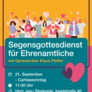 /von Thorsten BahneAm 21. September 2025, dem diesjährigen Caritassonntag, feiern wir um 11:30 Uhr mit Generalvikar Klaus Pfeffer einen Segensgottesdienst für Ehrenamtliche in der Herz Jesu-Kirche in Sterkrade (Inselstraße 40). Anschließend bitten […]